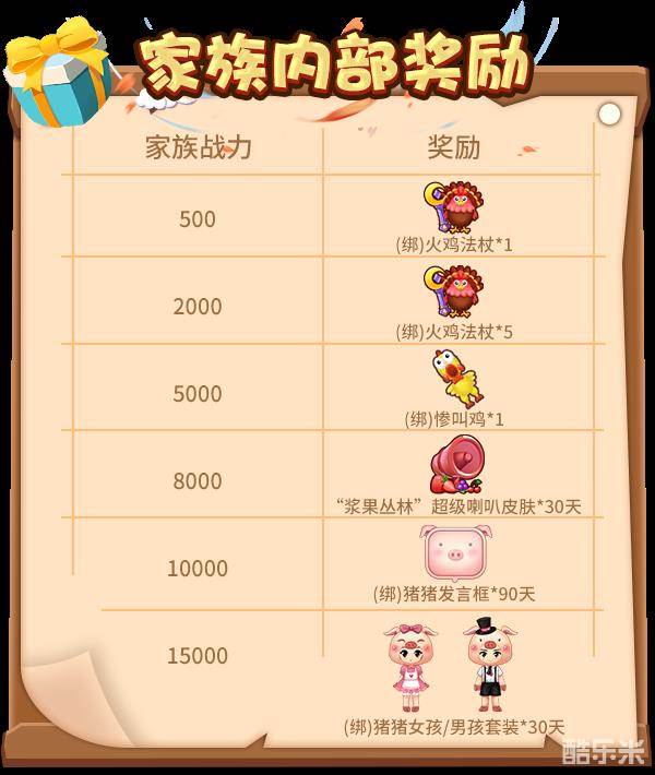 活动结束后,“家族战力”最高的前十名家族可为家族赢得奖励: