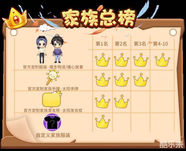 4. “官方定制”奖励和“自定义家族服装”奖励将加入获奖家族的“家族商店”进行出售,定价以游戏内实际情况为准;