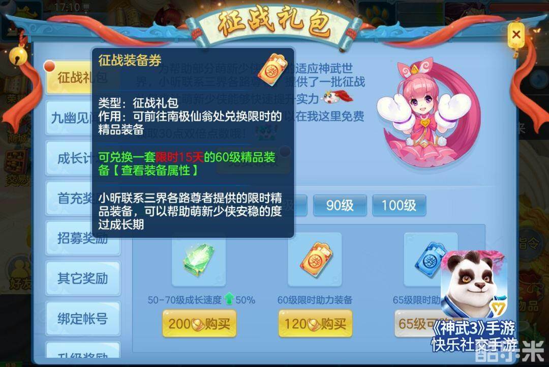 除了首充礼包更新调整,《神武3》手游征战礼包也在今日全服解锁,助力萌新快乐成长!服务器80级以后,角色等级≥50级,并低于服务器10级以上(最高不超过109级)的萌新玩家将拥有购买征战礼包的资格。不仅每周可以免费领取30点双倍点数,还可以购买不同等级的时光盒,每个等级的时光盒中包含大量经验、修炼、威望等储备资源,可以大幅减少修行所需时间。同时,萌新玩家还可以购买不同等级的征战装备券、65至105等级的征战宠物券,前往南极仙翁处换取限时的精品装备、成品宠物,全方位提升实力,帮助自己平稳度过成长阶段。