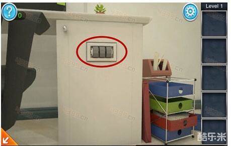 4.用硬币拧开书架下盖子上的螺丝,用钥匙打开盒子获得银色开门的钥匙。开门过关!