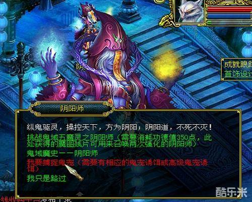 比较推荐的是第二种方法:通过收集残片开启封印,获得鬼将。此种方法获得的鬼宠不仅自带强化,还可以获得天生技能。我们需要来到NPC面前,选择“挑战鬼域五魔灵”,可以看到后边的说明是需要消耗功德值,此挑战可一人进行,也可组队进行,怪物数量是你当前队伍人数X2。不过,挑战的玩家必须每个人身上都必须具备有不低于350点的功德值,否则无法进行挑战。需要注意的是,如果战斗途中逃跑或者战斗失败,都将扣除350点的功德值不予以返还,并且战斗失败依旧会受到死亡惩罚。