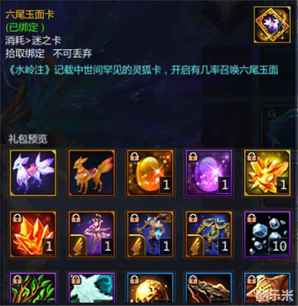 本次感恩节主题为【狐仙报恩】,所以除了换装外,礼包内容也多与狐狸有关,开启六尾玉面卡,将有机会获得极品坐骑,六尾玉面。