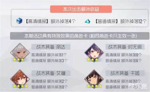 P:活动掉落加成的角色放在支援槽里也是有效的,请注意这一点。(如:战术装备·丽达)