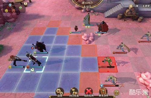 第三回合:这一回合豪格巴克给黄猿加BUFF,然后黄猿向下走到第四格,光速踢清掉下两格那只元素小兵。米霍克跟艾斯攻击边上及元素小兵旁边的另一只小兵,甚平打掉绿衣服boss,然后大部队集体下移。站位图见第四回合。
