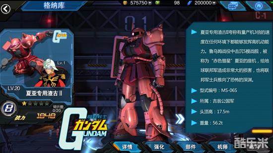 在游戏中的动作展现方面,无论是祖传神技夏亚飞踢,还是板斧炮击连续技都被无比细致地还原,伶俐的动作传承了历代动画中夏亚那洒脱的战斗方式。扎古固定武装扎古机枪、火箭筒以及手榴弹一并附带,看似朴素无华的武器在配合正确的战术运用,绝对称得上是男人中男人的机体。并且释放觉醒必杀时还会有夏亚真传的“红色有角三倍速”以及“赤色彗星”的高逼格光效,大幅度增加机体机动性,红光乍现,手起斧落,宛如猛虎,是不是很令广大红有三粉丝大开眼界呢。作为《敢达争锋对决》稀有的独眼机体,想必一定会受到许多拥有真实力的玩家倾慕,毕竟老话说得好“是男人就开扎古!”嘛。