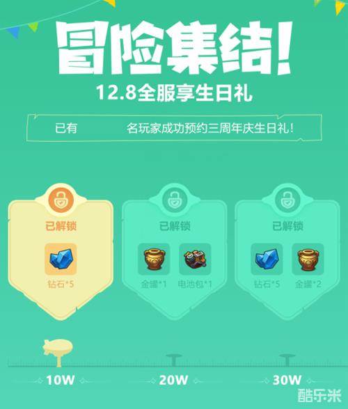 参加周年预热活动之“冒险集结”,即可与百万冒险者在生日当天(12月8日)一起领取丰富的生日礼!