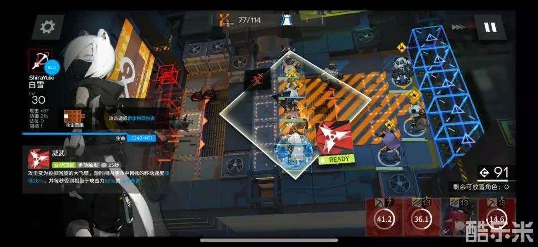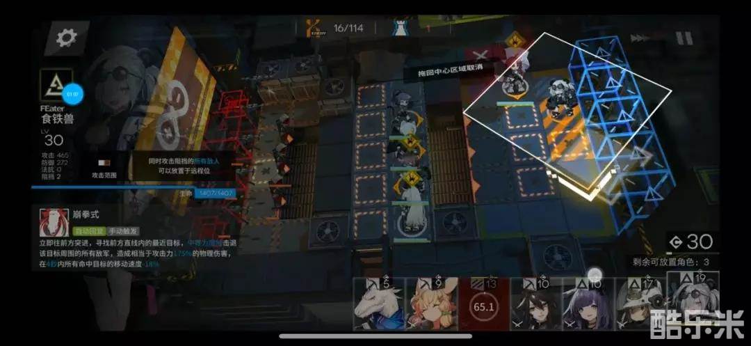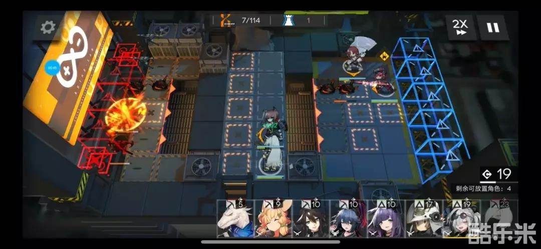 接下来一定要等空爆和闪灵费用都够了,然后一同置入场内,其中空爆面朝左先放,闪灵后放。空爆会帮闪灵吃掉第一波输出,她也是这局唯一向左放的狙击。