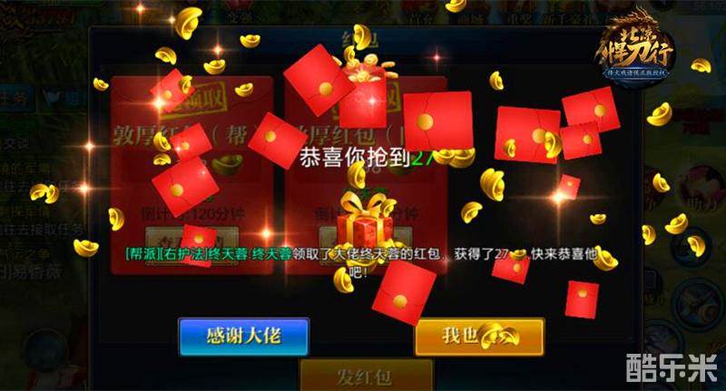 《北凉悍刀行》公测更新后,游戏将开启红包功能,在帮派和国家频道也可以发放红包了!如果你是一国之君或一帮之主,随时都可以在国战或帮战胜利后论功行赏,收获属下忠诚的同时很可能会收到一大批粉丝。而如果你在等土豪发放红包,那就要准备好比拼手速和网络了。玩游戏还能领红包,北凉就要玩不同!