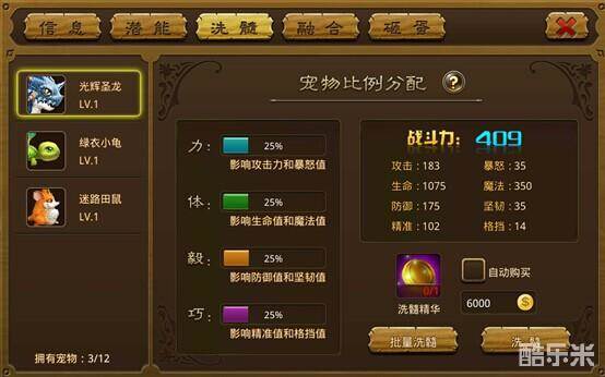 洗髓:洗髓会影响宠物升级属性的分配,玩家可以根据自己的喜好调整宠物的属性。