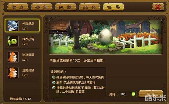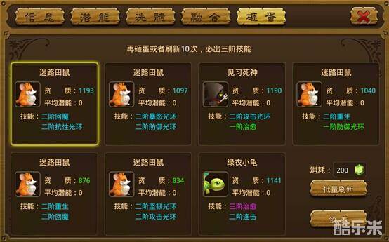 5、每刷新或者砸蛋10次的时候,必定会出现带有3阶技能的宠物。