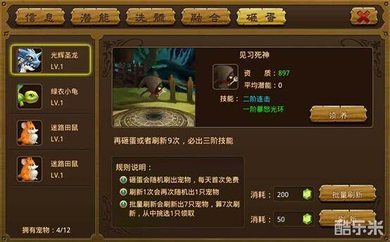 3、刷新需要花费50晶钻,会把原来砸出来的宠物随机变成另一只。