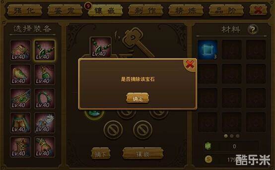 3、点击“摘下”可以取下已经装上的宝石,摘下是不需要任何花费的。
