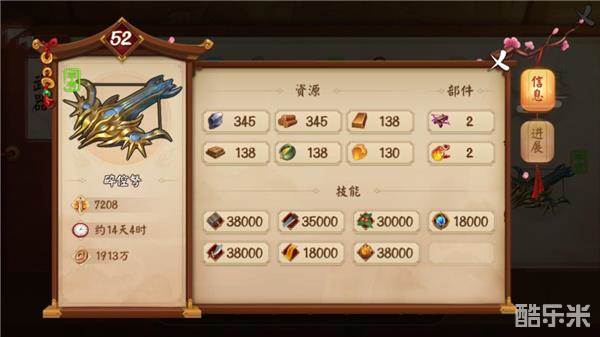 再其次就是威力强大的碎倥弩了,此装备等级为52级,隶属于装备中的弩类,制造所需资源为矿石、木材、铜、硬木、油 和宝石 。制造所需部件为45级无暇品质三矢弩车,28级制造材料琉璃天火,另外制造所需技能有锻造、木工、炼丹、天文、兵器制作、阵符、机关。专属技能为摸金校尉(中),作用是使武将自身探索获得资源最小数量+2,图纸可通过运营活动获取。