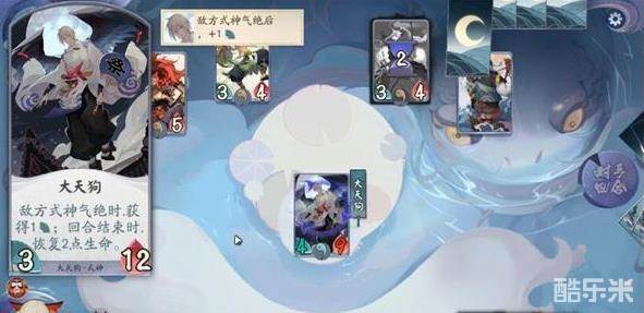 对局中我们一定不要让我方式神气绝,前期依靠战斗和“风袭”击杀敌方式神,让大天狗的力量能持续增长,若其生命值较低,我们选择退回准备区,让牌手承受伤害,利用大天狗基础能力的回血使其能有一个健康的状态。