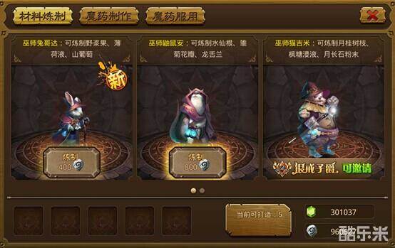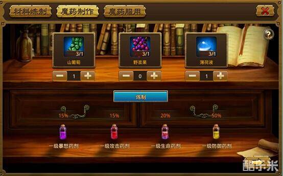 点击炼金工坊玩家可进入系统界面,玩家可在此界面中制作材料合成魔药来提升自身属性。