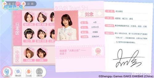 在招募自己心仪的偶像时,可以自由切换二次元的虚拟形象和三次元真人形象,查看她的资料和亲笔签名,听到由小偶像亲自配音的语音。即使是对AKB48并不熟悉的玩家,也能对性格各异的她们产生大概的了解。