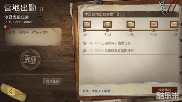 完成出勤任务后,幸存者们可以获得出勤数,每个出勤任务可以获得1点出勤数,除此之外还可以获得营地贡献值,给自己的营地作出贡献。