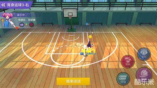 背身运球3:快速突破技能,旋转后向侧后方突破。“旋转、跳跃,你猜我闭没闭眼?”——这个技能的移动速度非常快,不过突破后的位置比较容易判断。