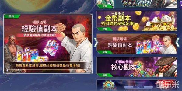 至于「经验值副本」、「金币副本」,经验值副本因为主线关卡就会掉经验水,我认为在最少进入困难经验副本前花体有点亏,推关推不动再重点农就好;金币副本除非你超级土豪,练一堆角色,不然前期需要钱就是「提升核心」,我目前只练三只,角色核心都还有跟上进度,因此很少打金币副本。(角色38以后才会开始缺钱)
