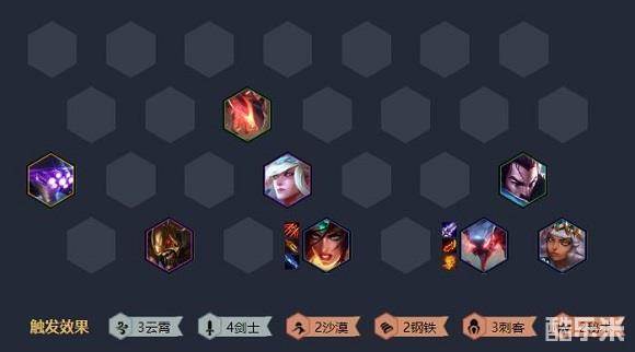 4剑3刺3云霄阵容羁绊:3云霄4剑士2沙漠2钢铁3刺客2秘术