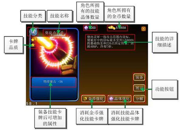 强化:分为金币强化和晶体强化,金币强化消耗金币,晶体强化消耗技能晶体