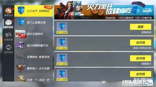 本周版本更新后,联合饿了么、虎邦辣酱、曼玲粥一起用美味为战士充能!登陆饿了么即可解锁虎邦战力提升游戏套餐,带话题#火力全开 放肆嗨吃#转发微博,还有机会获得饿了么与虎邦辣酱送出的大礼包:游戏定制版虎邦辣酱及其美味春笋香菇酱、拌面、零食,饿了么周边公仔等实体产品,线上更有橙色枪械、彩钻、补给券等珍稀道具送出,带你畅爽开黑。