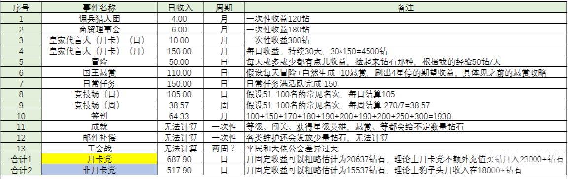总计如果一个玩家什么都不消费,一个月钻石的数量大约是18000钻石左右,很棒的收入。