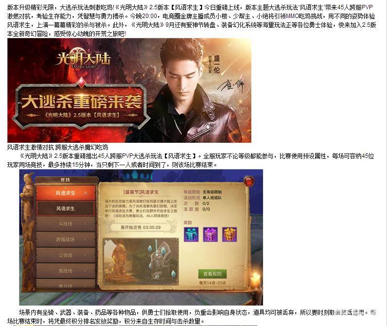 《光明大陆》2.5版本今日来袭 少帮主小楼魔幻大逃杀生存直播