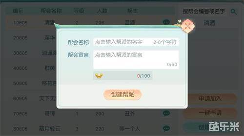 1、加入:小伙伴们在达到18级后,即可开启帮会系统。点击进入后,小伙伴们可以选择心仪的帮会加入,亦可一键申请(随机)。同时,若有结实的好友在某个帮会,亦可直接精准搜索该帮会的名字或编号;