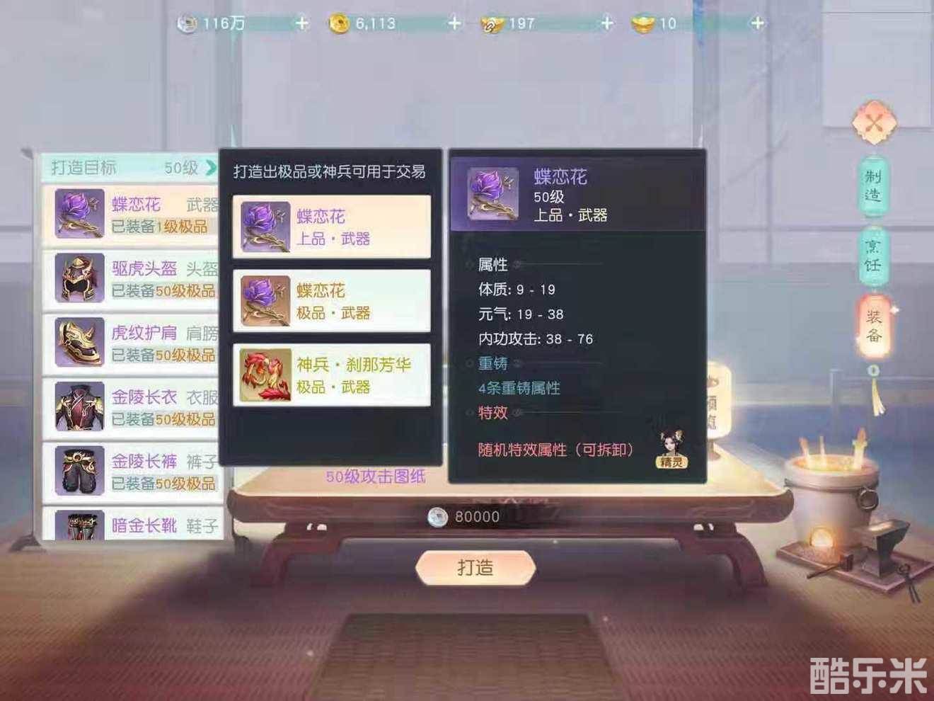打造最基础的就是获得紫装,再差的装备是不出的,好一些的产出就是金色装备了,最高的产出就是神兵,但是几率是在是低,比一般游戏里的SSR获取概率只低不高。