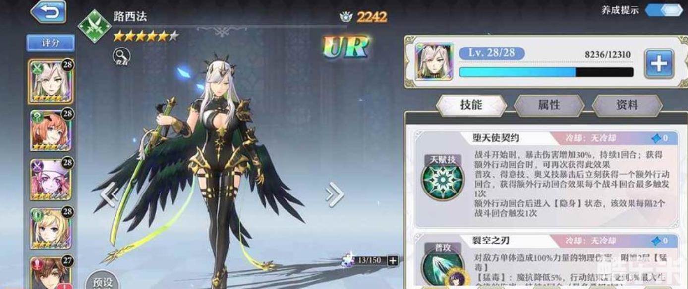 路西法的奥义技【真·弑神逆刃】对于敌人单体能够造成非常高额的物理伤害,而如果有暴击,还可以再行动1回合;至于其支援技【炼狱·断翼】也有着强力的输出。