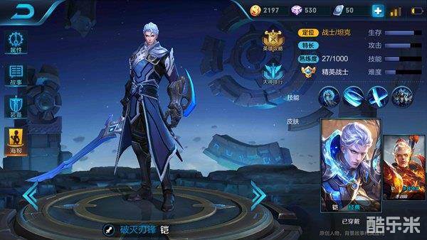 铠的攻击范围为近距离,生存能力较强,攻击伤害很高,并且可以在打出物理攻击的同时对敌人造成法术伤害,是一位混伤型战士。铠的技能需要消耗法力,所以装备中自然要提升铠的最大法力,以供不断释放技能,且由于是战士英雄也需要一定的攻击装备,才能对敌人造成有效输出,最后还要为队友承受一定的伤害,并不能一味叠加攻击装备,适时选择防御装备能让铠有更强的站场能力,从而在吸收伤害的同时打出更多输出。