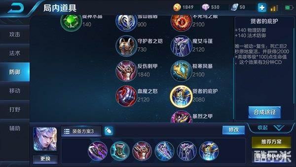 暗影战斧、抵抗之靴、反伤刺甲、冰痕之握、魔女斗篷、贤者的庇护