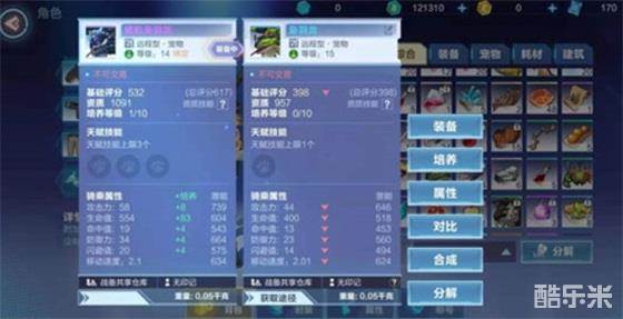 可以看出暗影枭羽龙在等级低一级的情况下,整体的属性依然高于枭羽龙,除了基础的属性外,天赋技能的上限数量也增加了3个。