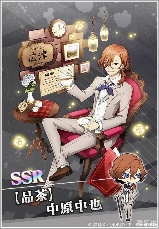 这张卡的卡面是在“广津咖啡店”度过中午茶时光的中原中也。看起来他很享受在安静的店内一边品茶一边沉思,远离平日喧嚣的氛围。虽然不知道这难得的休息时光能持续多久,但是既然都来了,就抛开这些杂念吧。