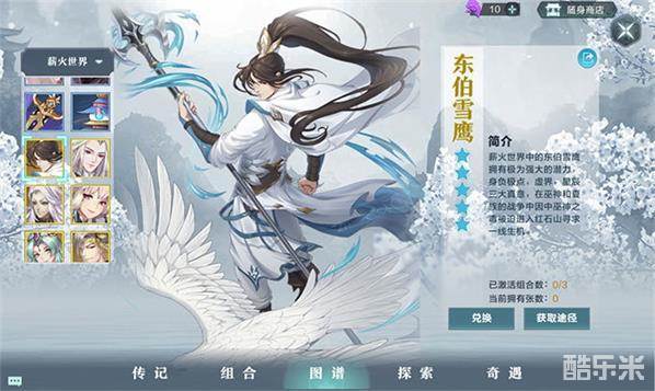 东伯雪鹰:薪火世界中的东伯雪鹰拥有极为强大的潜力,身负极点,虚界,星辰三大真意,在巫神和夏族的战争中因中巫神z毒被迫进入红石山寻求一线生机。