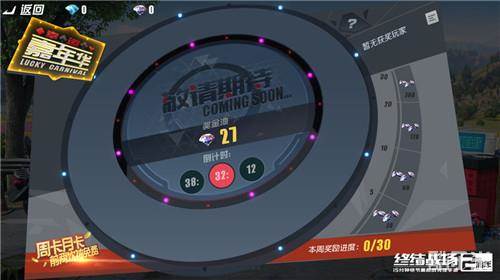 除了可以抽中奖品之外,玩家还有机会抽中神奇的“幸运事件”,例如获得免费抽奖机会,在下次抽奖随机获得3个奖品,或必然抽中紫、金品质道具,甚至可以直接达成当前阶段宝箱要求,或直接领走奖金池所有钻石,此外每周累计的抽奖次数还可以领取对应宝箱。幸运嘉年华还有概率升级为超级嘉年华,升级后奖励将更加丰厚,并有几率出现枪械、载具等稀有外观;