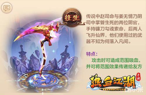 阎王叫你三更死,谁敢留你到五更,阎王指令的执行者《热血江湖手游》全新神兵无常销魂已经现世,能掌握它的豪侠,就多了一份掌控江湖的筹码,想要屹立武林之巅的朋友,抓紧探究吧!