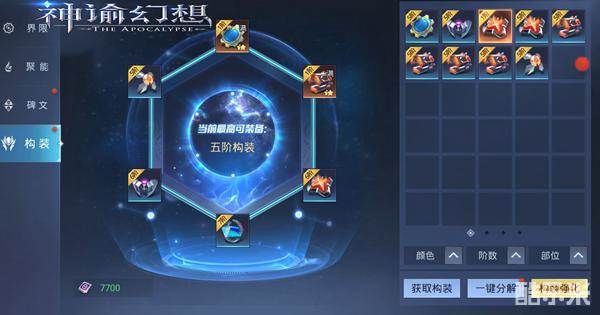 构装:构装分为6个部位,分别是耦合齿轮、稳定器、推进装置、防护壁、魔晶仪、反应炉,各自都有不同的属性,但构装的传奇属性是随机生成的,更高阶的构装拥有更高的传奇属性值。