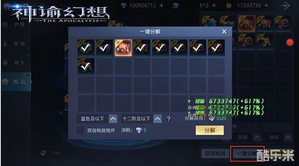 换下来后的普通构装可以进行一键分解,分解后会返还构装残件,可以对可强化钩状进行强化。另外,如果想要分解获得更多的构装残件,可以勾选一键分解左下角的“双倍构装残件”,消耗钻石获得双倍构装残件,这样就能有更多的构装残件进行强化啦~