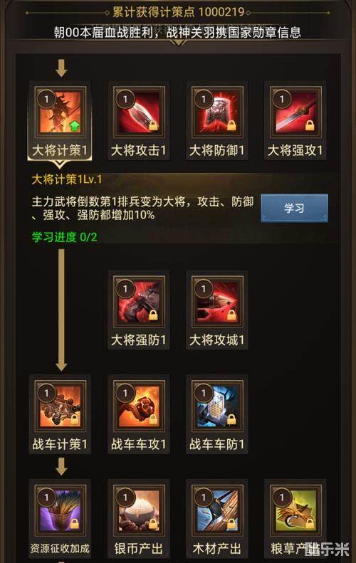 累计获得一定数量的计策点后,即可解锁计策,解锁后的计策可消耗计策点学习和升级。学习、升级计策可以提升资源产出及战力等,要你仓廪丰足、战无不克!