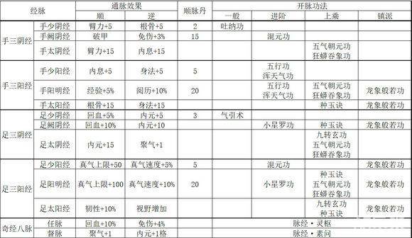 烟雨江湖伙伴经脉效果及开脉功法大全