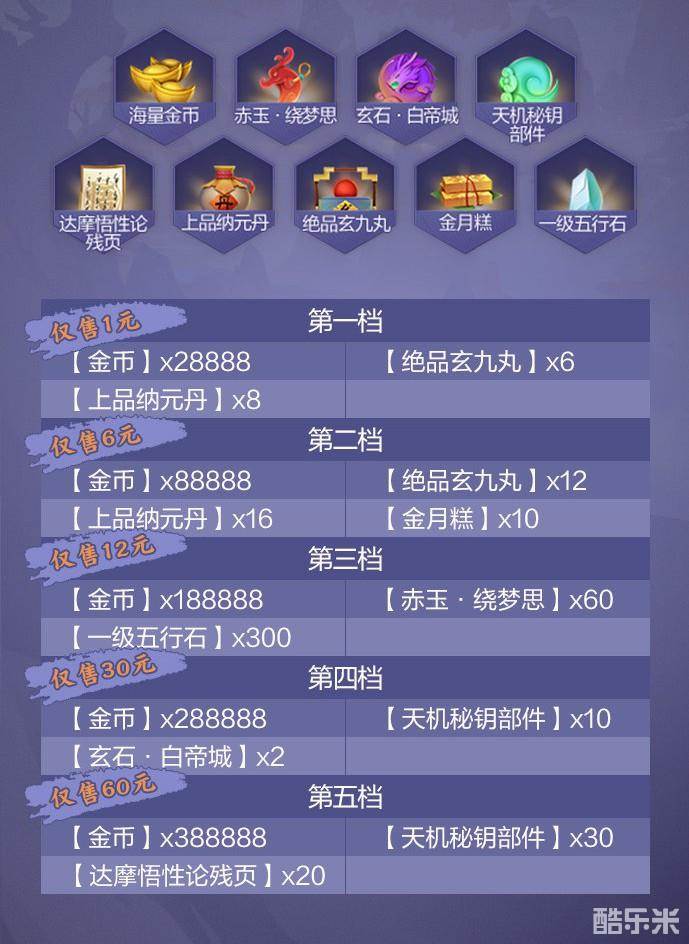 多档暖心礼包现已永久上架,助力少侠更快成长。本次暖心礼包除了海量金币超额馈赠之外,更有大量珍品道具相送,每人每档限购一次,每购买一档礼包后即可解锁下一档礼包,享受更多的优惠福利!