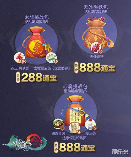 双十二多款特惠礼包限时供应,【陨铁礼包】【太墟挑战包】【心魔挑战包】助力少侠闯荡江湖!