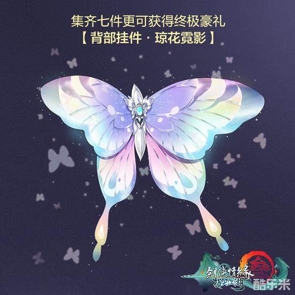 集齐全部7件后,可获赠终极豪礼背部挂件【琼花霓影】,【琼花霓影】外观表现有别于其他挂件,流光溢彩、轻盈灵动、妙不可言。