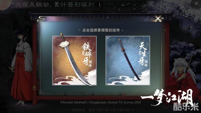 除了独具特色的联动限定外观,还有《犬夜叉》中三套经典的武器现身《一梦江湖》,分别是“铁碎牙”、“天生牙”、“破魔矢”,它们将以挂件的形式供玩家随身佩戴。活动期间,玩家通过累积签到就可以免费获得“铁碎牙”和“天生牙”其中一个挂件,切勿错过哦。