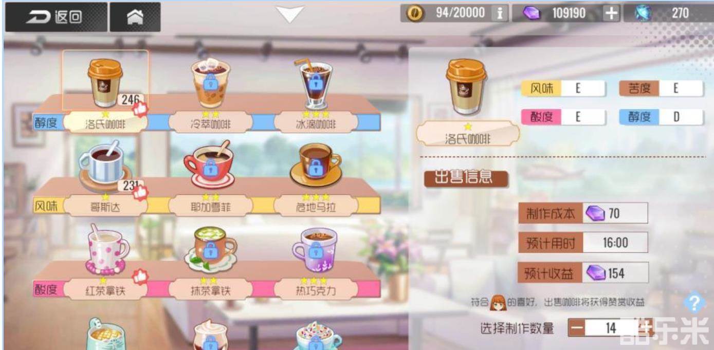 店员的选择,对于咖啡店的经营来说至关重要,咖啡店需安排一名当值店员,而只有店员的心情数值在0以上时,才会给咖啡店带来收益,到店的每种类型的客人,都会有自己偏爱的咖啡口味和偏爱店员,与客人的喜好契合,可以带来额外的收入,经营咖啡店会获得咖啡币和晶币,可以在商城中购买家具和装饰,进行一番装修,将咖啡店装饰的漂漂亮亮的,这样可以增加舒适度,吸引更多客人。