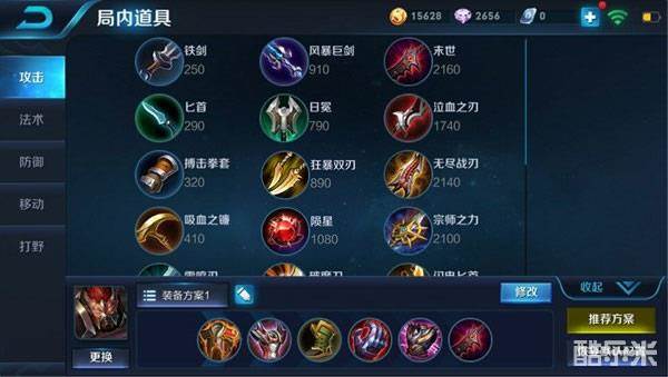 六神装:红莲斗篷、反伤刺甲、影忍之足、血魔之怒、暴烈之甲、末世