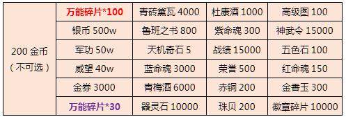 2、6个不同阶段中只能根据活动期间,累计消费金币数量所在阶段选择武将进行申请;如小明活动期间累计消费达到15W金币,则可以在列出的所有武将中选择一个武将,或者选择消费15w金币额度的澄源石(如武将和橙源石均不需要,则可以选择12w金币额度的进阶酒奖励)!