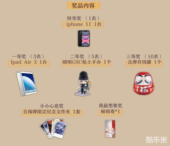 观看主播精彩对弈之余,官方也为观赛的玩家们准备了诸多豪华福利。在应援环节,玩家每天可通过应援选手获得一次抽奖机会,抽取iPhone11、iPad Air、晴明GSC粘土手办等大奖!